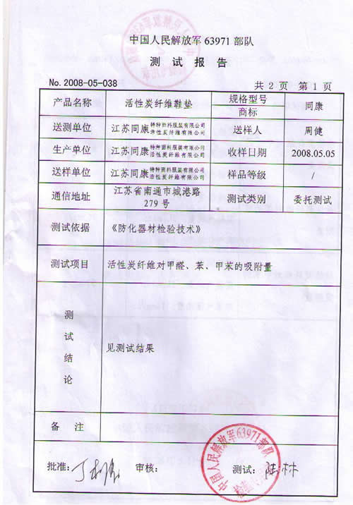 Jiangsu Tongkang Activated Carbon Fiber co., Ltd