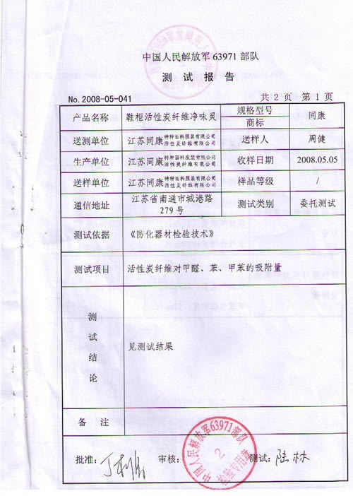 Test Report of Deodorant for Shoes Cabinet