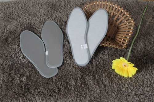 The product takes activated carbon fiber as its inner material and net-fabric and non-woven fabric as the cover. Activated carbon fiber has excellent functions such as dehumidification, deodorization, warm keeping, germ king and releasing negative irons as well as adsorbing human energy to produce far-infrared radiation. It can regenerate repeatedly and is a world-standard adsorption material of high-efficiency and multifunction. Soft and comfortable, the insoles can also prevent dermatophyte and athlete’s foot if worn insistently. |