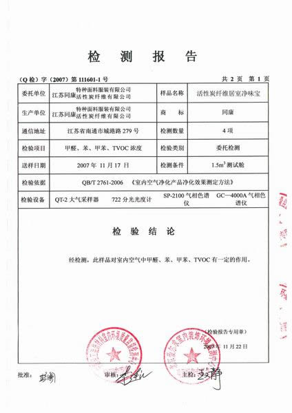 Widely used in newly decorated rooms decoration paints, various composite board, adhesives, imitation water paint, imitation porcelain paint and new furniture contains a large number of benzene, toluene, formaldehyde and other toxic harmful volatile substances, these substances on the human body respiratory and heart, brain, stomach and liver organ damage. Mild cases cause lachrymation, cough, allergic; in severe cases, cause visual impairment, aplastic anemia, reduce children's IQ, leukemia and birth defects, senile dementia, long-term exposure to carcinogenic. Activated carbon fiber as a kind of high performance adsorption material, its surface is willing to have the rich micro hole, its adsorption quantity is big, compared with the traditional granular activated carbon, has the fast adsorption, the desorption speed, the regeneration is easy, In multiple adsorption and desorption process can maintain the adsorption performance of the original, renewable up to 10 million times, the adsorption of harmful gas and malodorous substance with Kang's production of activated carbon fiber net room Weibao star industry activated carbon dozens of times larger than obtained national patent, especially for in newly decorated rooms and a new set of furniture in a variety of harmful substances, especially the carcinogenic substances, aromatic compounds such as benzene, formaldehyde removal, and make the air fresh and clean, beneficial to human health. The product was detected by the China Indoor Decoration Association Environmental Monitoring Center of formaldehyde, benzene, toluene, organic volatile matter (TVOC) elimination has obvious effect Activated carbon fiber can effectively prevent the toxic and harmful substances on the human body against. At the same time, it also has bactericidal antibacterial, purify indoor air, keep clean living space.