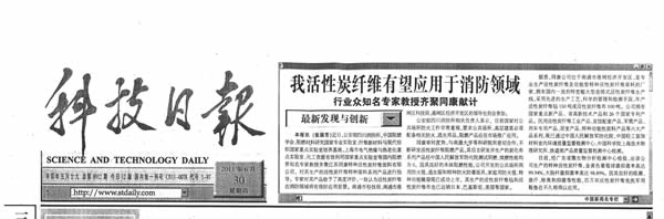 2011年6月30日科技日報,同康活性炭纖維有望應(yīng)用于消防領(lǐng)域----行業(yè)眾知名專家教授齊聚同康獻(xiàn)計獻(xiàn)策。
